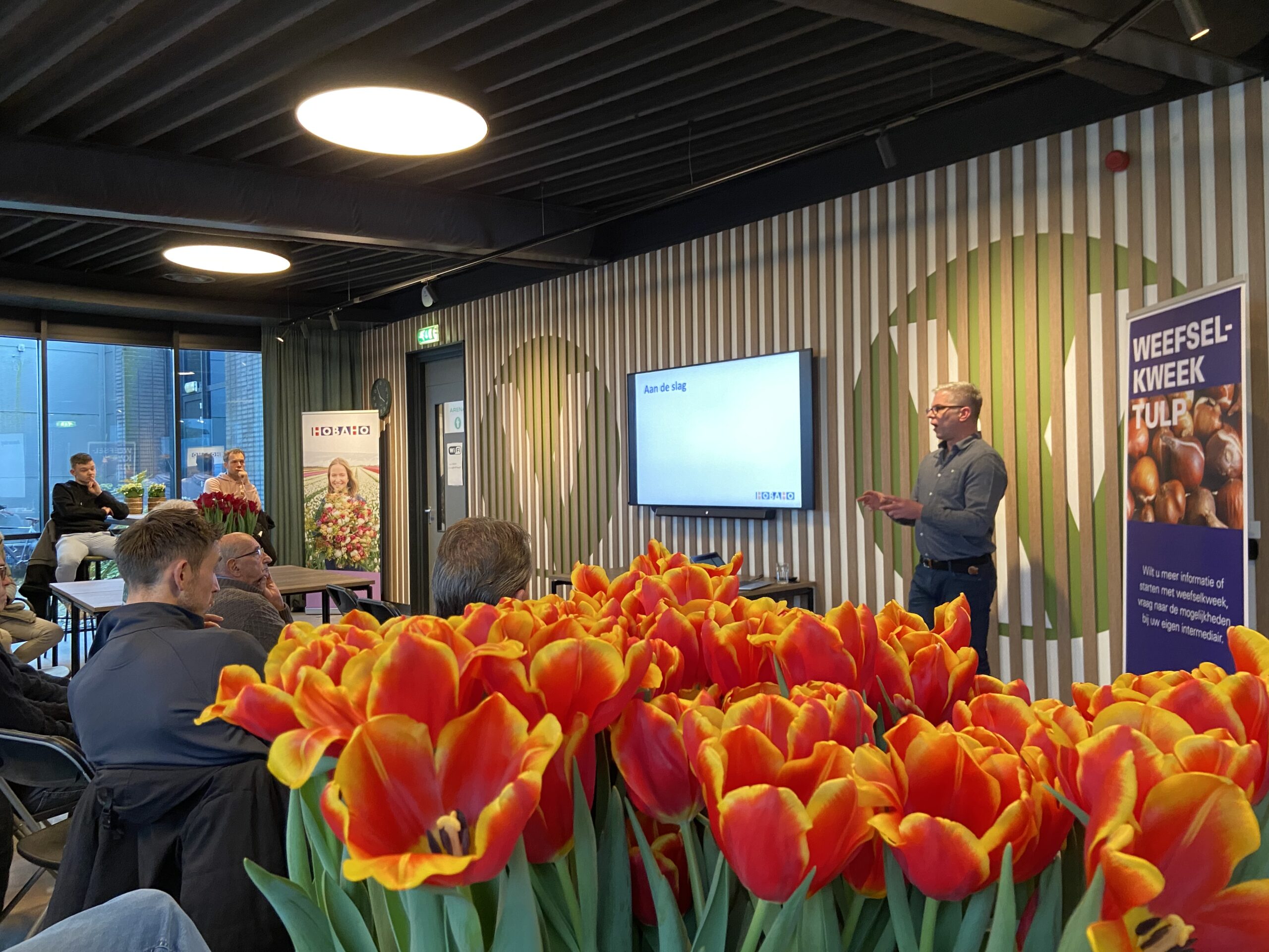 Traditiegetrouw start de Dag van de Tulp met de KAVB-jaarvergadering van de productgroep Tulp, gevolgd door een presentatie van de BKD over keuringsactualiteiten.