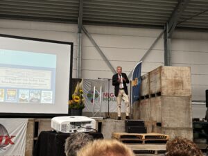 NLG-voorzitter Colja Corts opende de dag met een terugblik op tien jaar NLG Holland. De coöperatie begon als een kleine groep telers die bodembeheer in de praktijk wilden brengen. Inmiddels is het uitgegroeid tot een vereniging met twaalf leden, bestaande uit duurzame bloembollenkwekers verspreid over zand- en kleigronden in Noord-Holland. Centraal in de samenwerking staan duurzaamheid, kennisuitwisseling en innovatiekracht.