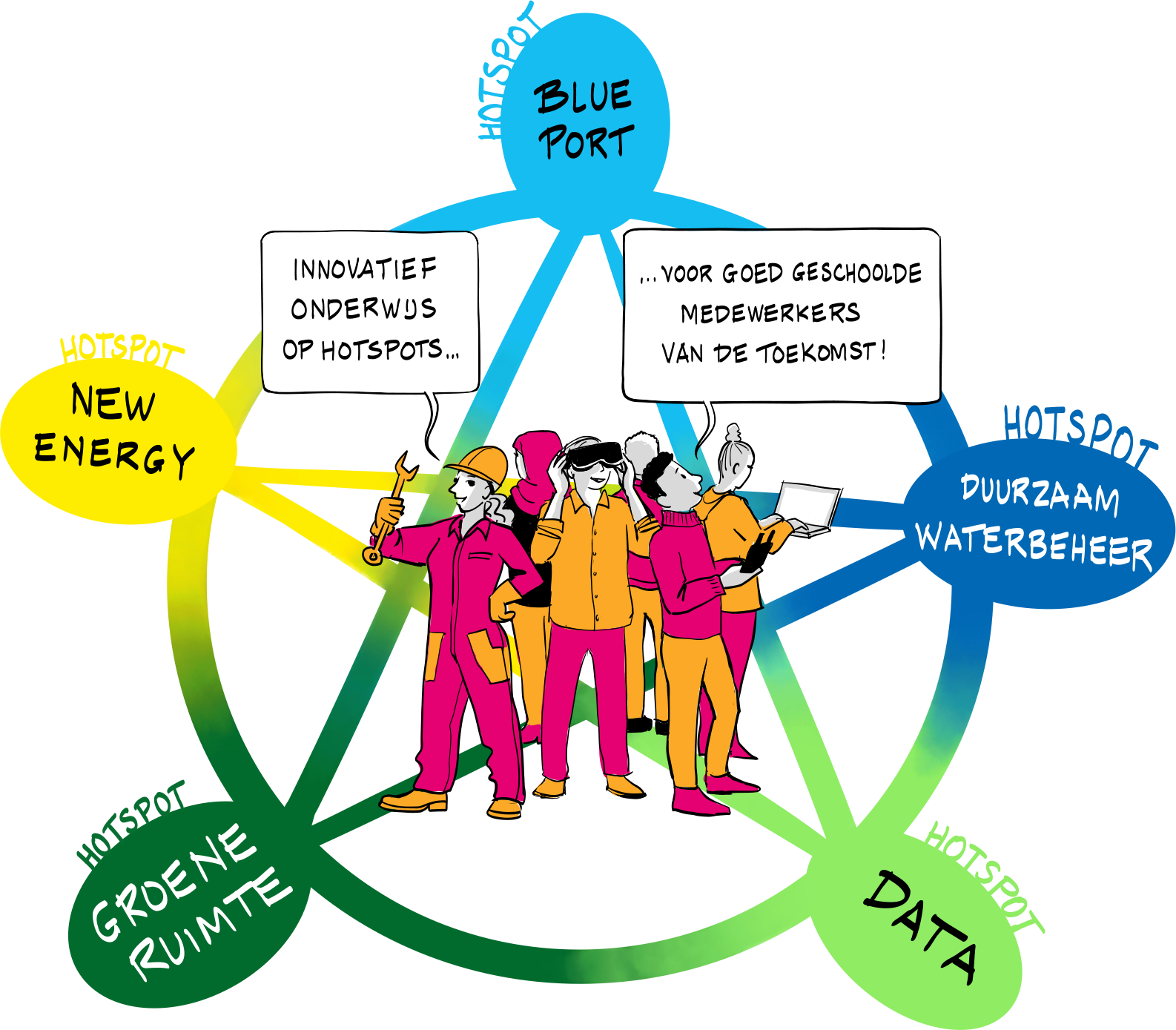 Tijdens het RIF mbo project Smart Future wordt ingezet op vijf thema’s binnen hotspots: